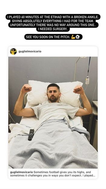 구단은 "비카리오가 토요일 맨체스터 시티와의 프리미어리그 경기 승리 중 부상을 당했다. 그는 향후 어느 시점에 훈련에 복귀할 수 있을지 의무 스태프들로부터 검사를 받을 것"이라고 전했다.