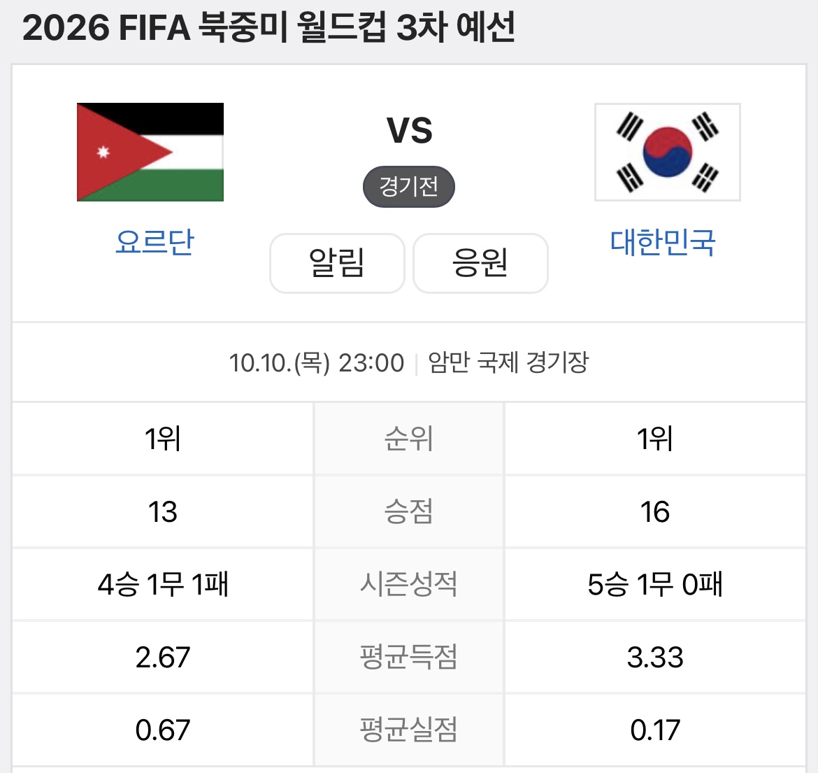 대한민국 vs요르단