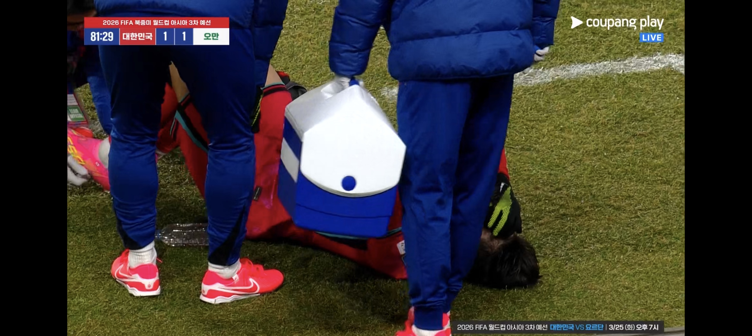 그러나 후반 35분 상대와 경합하다가 왼쪽 발목에 고통을 호소하며 넘어졌고, 결국 그라운드 밖으로 업혀 나왔다.