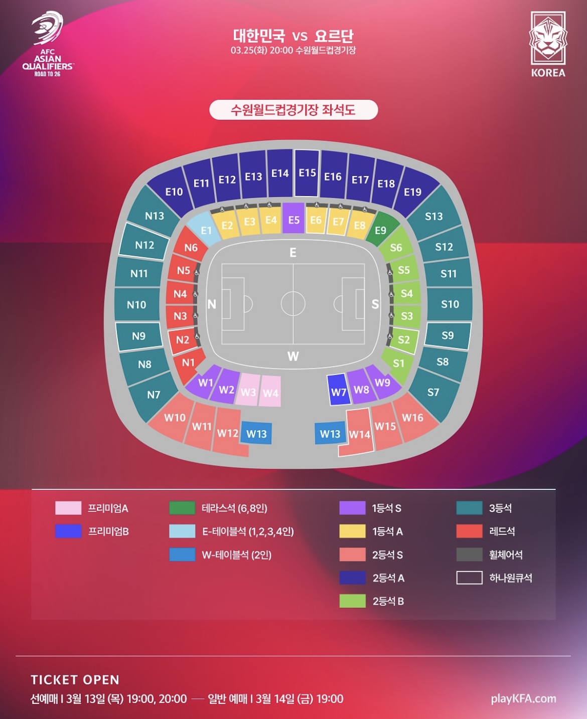 수원월드컵 경기장 좌석안내입니다.